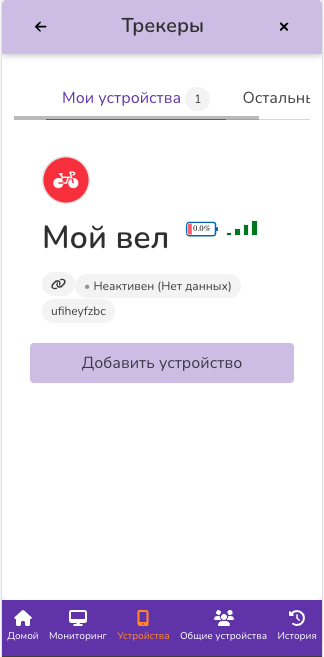 Переходим в приложение traccar, основной и единственный экран выглядит так