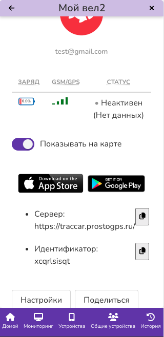 Теперь надо настроить само приложение, чтобы оно отправляло данные на prostogps.ru